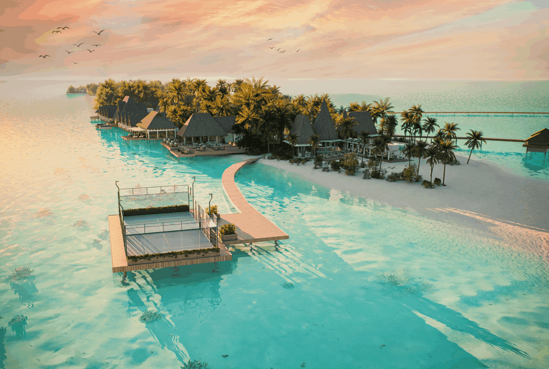 Meyyafushi kombinerer 95 poolvillaer, 7 eksklusive restauranter og barer, 24-timers Premium All-Inclusive, undervandsrestaurant og Maldivernes første overwater padelbane.