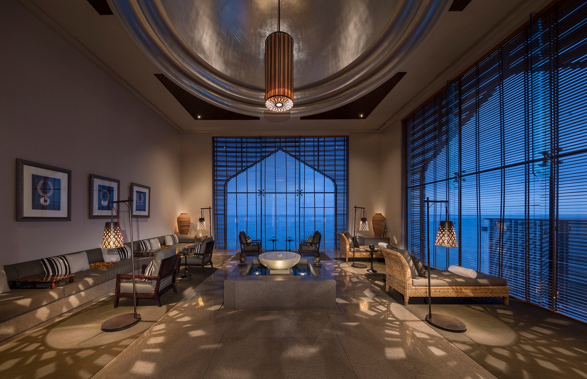 Den betagende rosa facade og den centrale gårdhave på Shangri-La Al Husn er det første hint om, at dette ikke er en almindelig strandresort. Designet, inspireret af den arabiske arkitektur fra traditionelle omanske forter, er i sig selv overdådigt, med guldbelagte springvand, farverige tæpper og poleret marmor, hvor end du ser. Det overdådige interiør, med udsmykket stukarbejde, arabiske alkover og luksuriøse interiør, afspejler stilen i en Sultans palads.